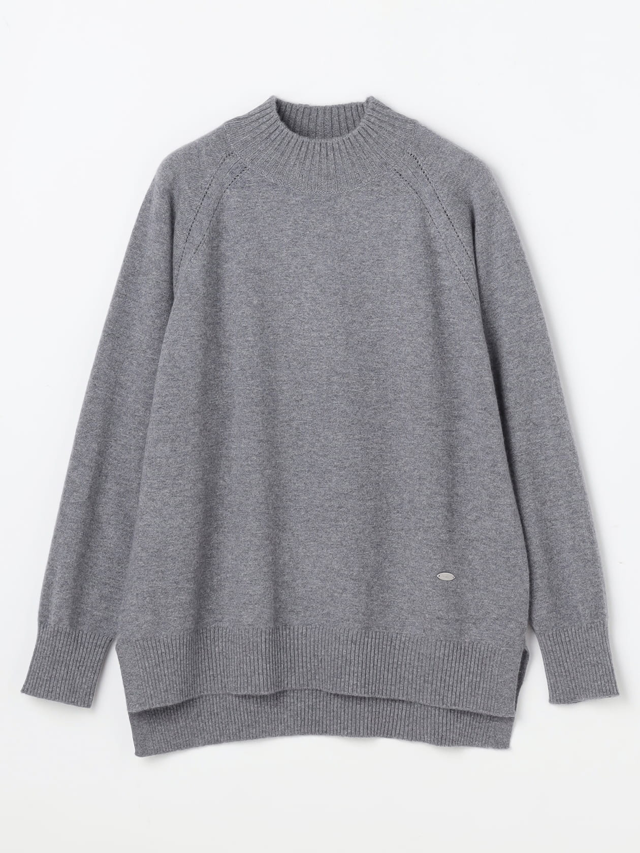 ラグランスリーブには透かし柄を施し、さりげないデザインポイントに。