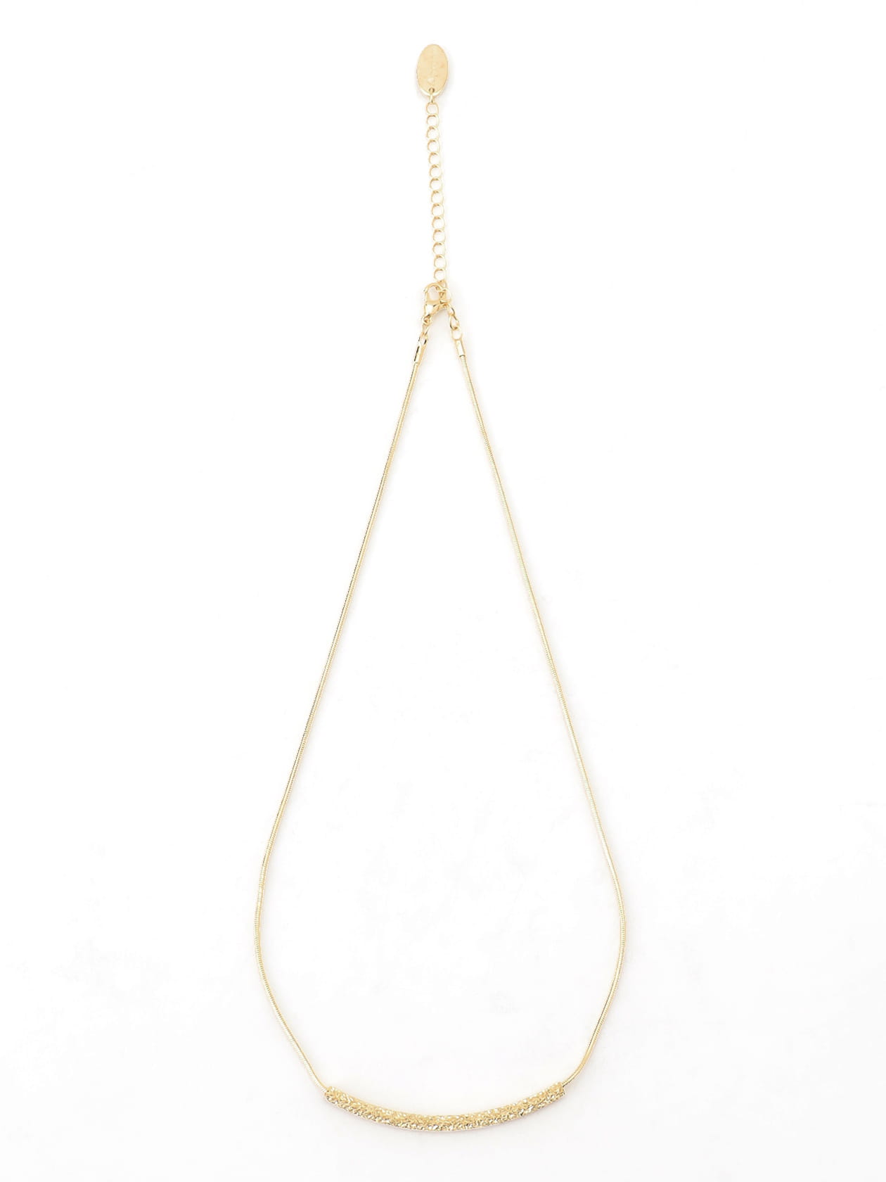 メタルのキラキラした加工が施されたバーモチーフとシンプルなスネークチェーンが洗練された印象です。