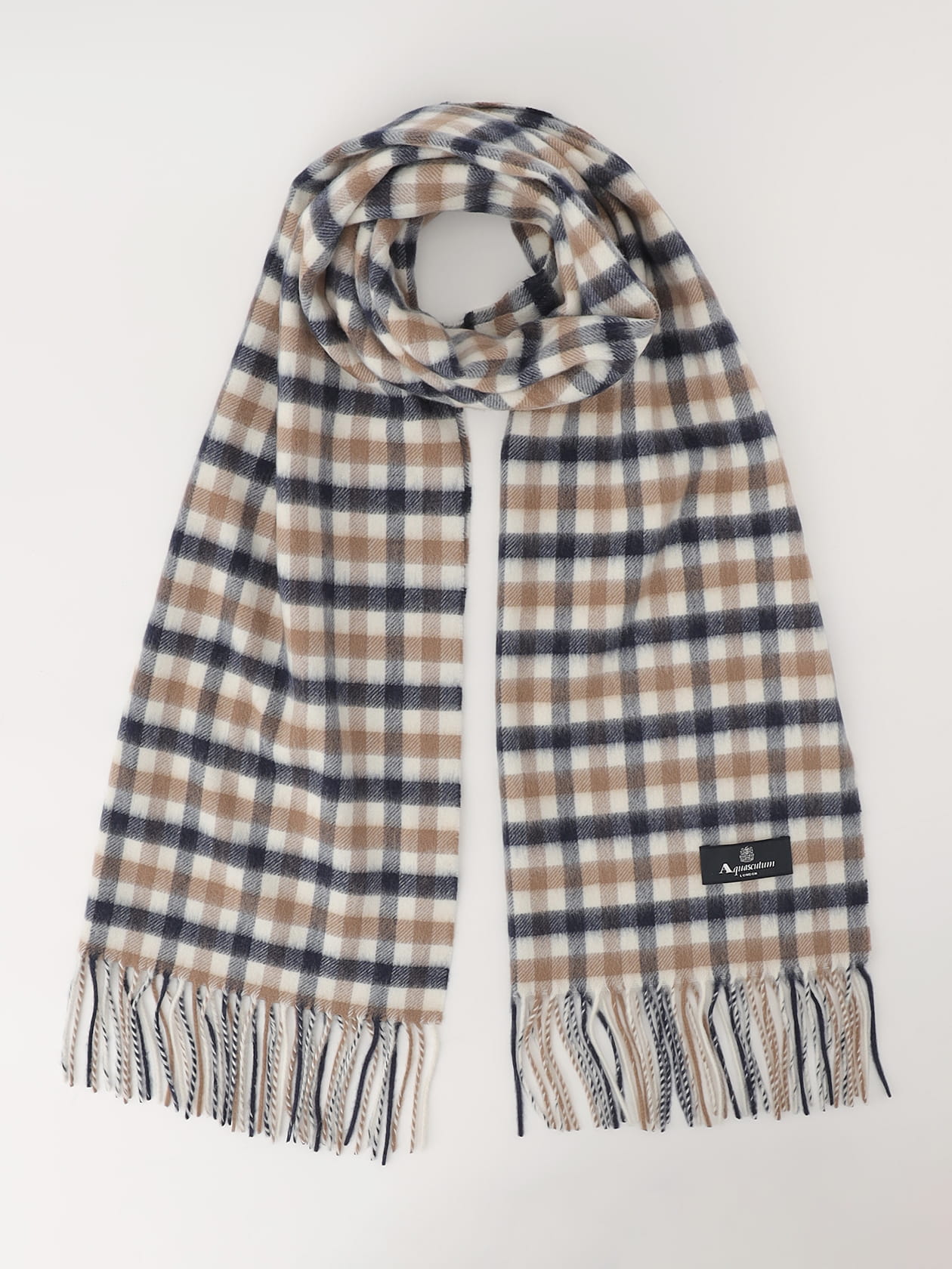 Aquascutumの定番アイテムであるクラブチェックマフラー。