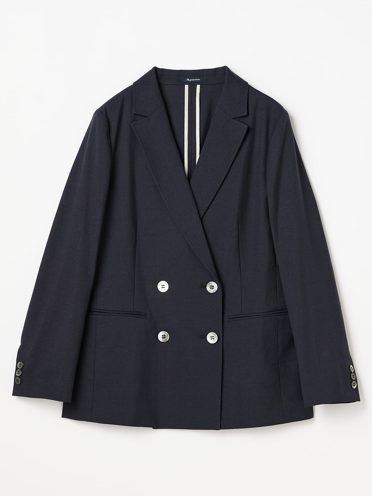 長めのラペルと低めに配した釦が、モードな印象を与えるテーラードジャケット。