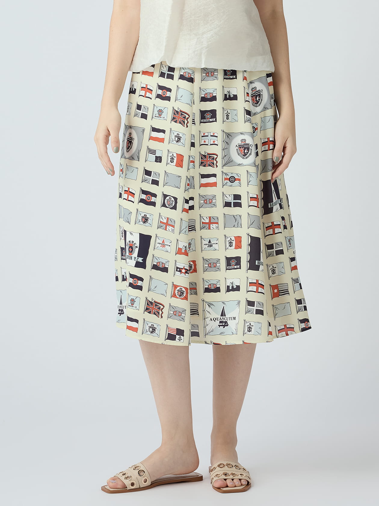 緻密に描かれたフラッグ柄は、ヨットクラブからインスピレーションを得たデザインで、ブランドロゴやユニオンジャックをミックス。