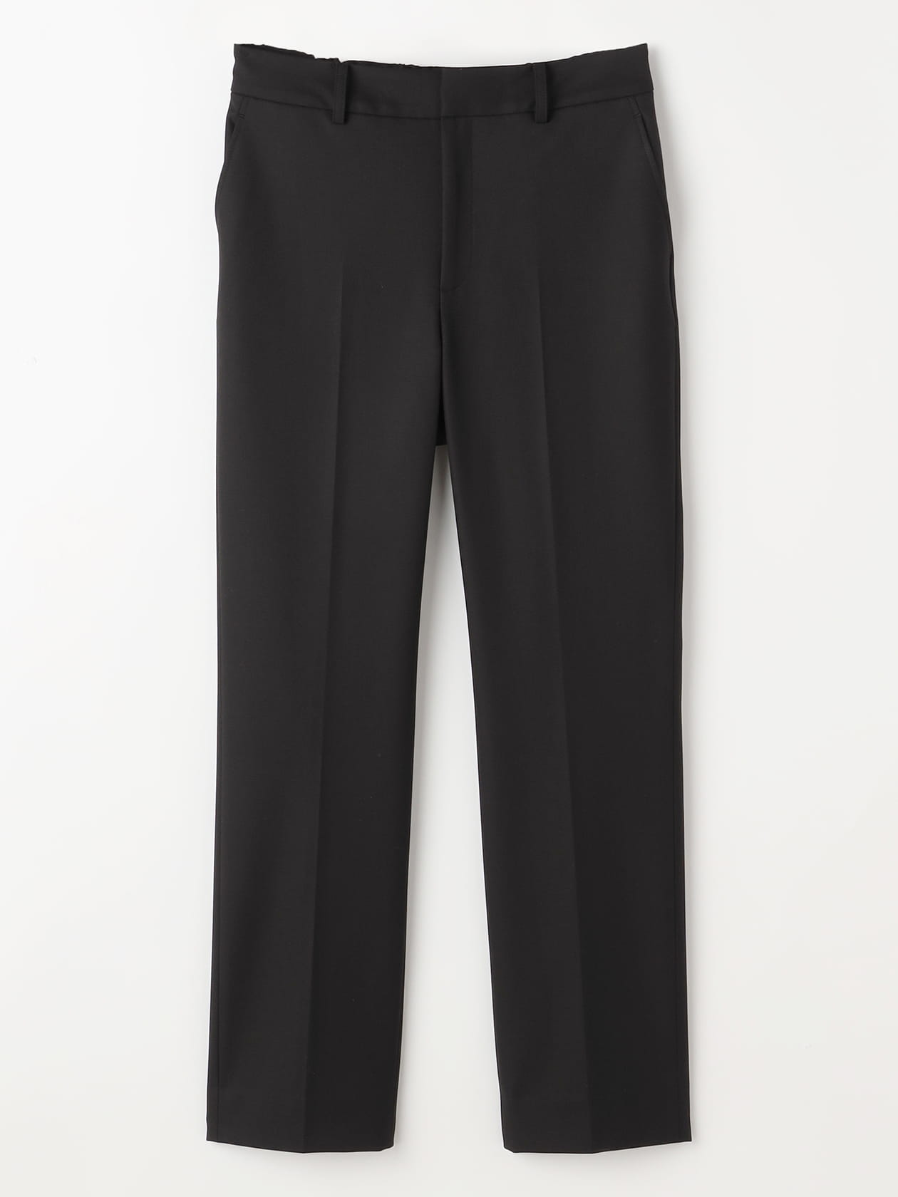 フロントはノータック、バックスタイルは片玉縁ポケットで仕上げたテーパードパンツ。