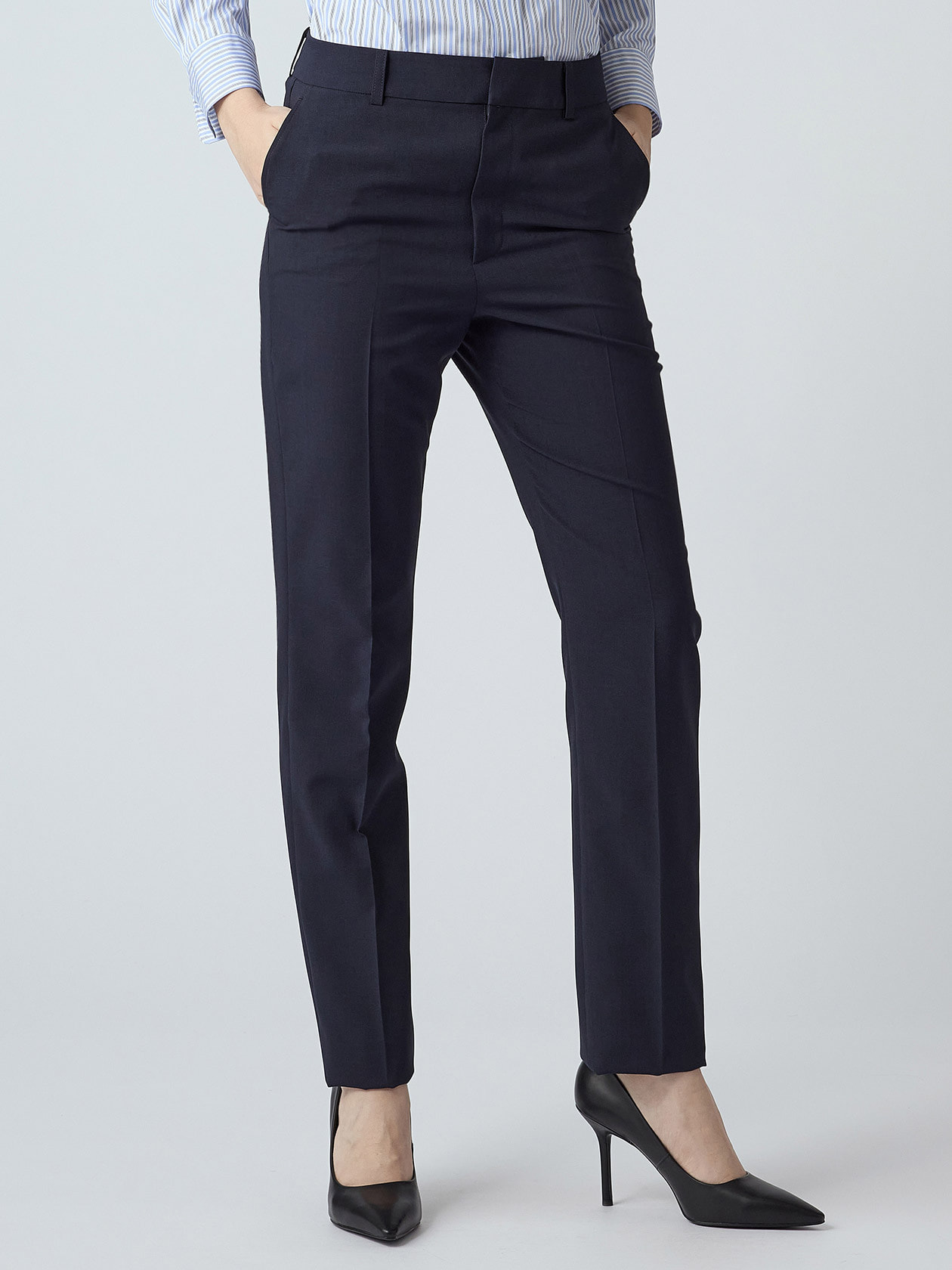 クリーズラインの効いた端正なデザインに、バックスタイルのみウエストゴムを配した着心地の良さが魅力。