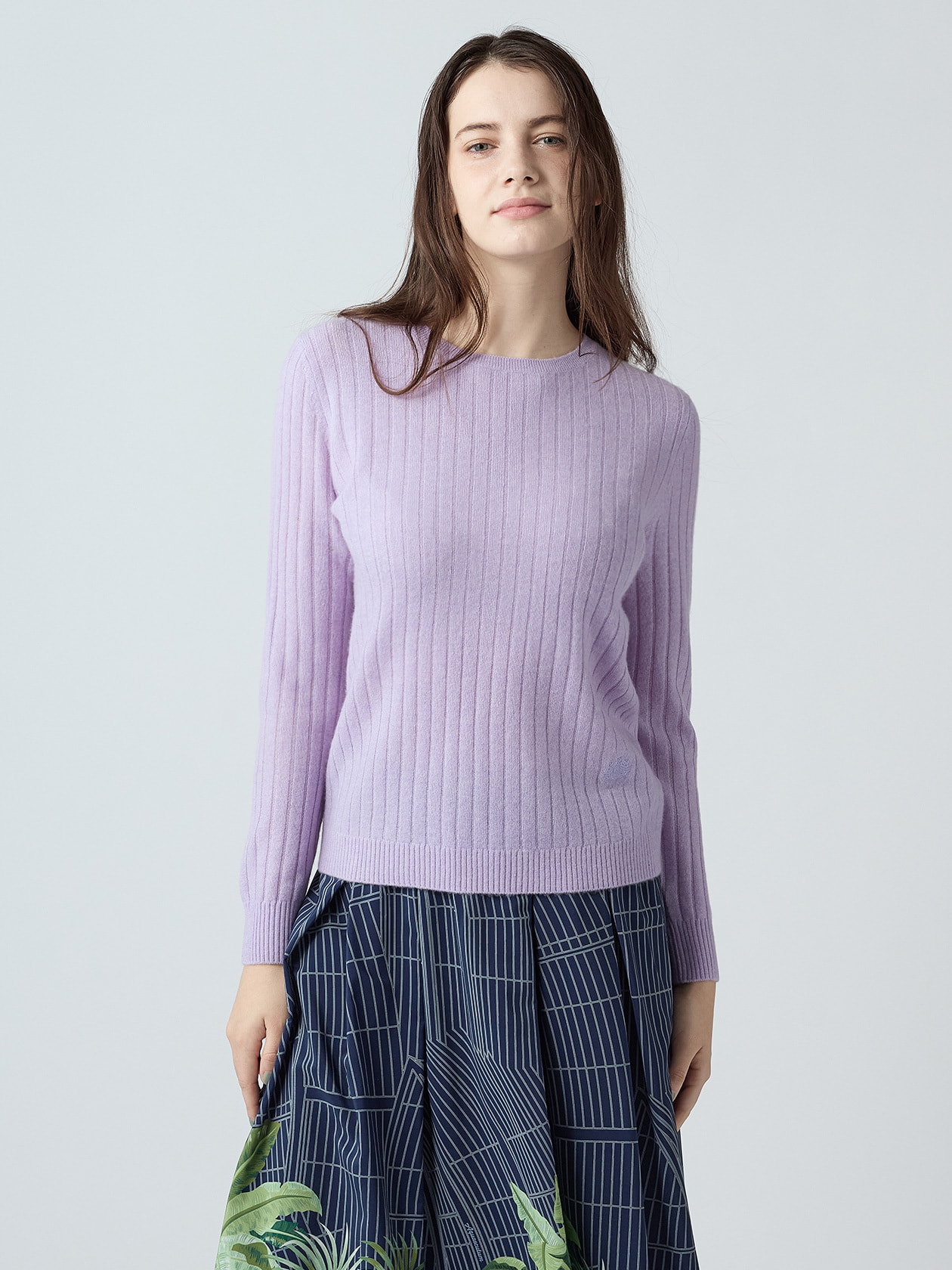 ワイドリブ編地が縦のラインを強調しつつ、フィットしすぎない程よいゆるさが魅力。
