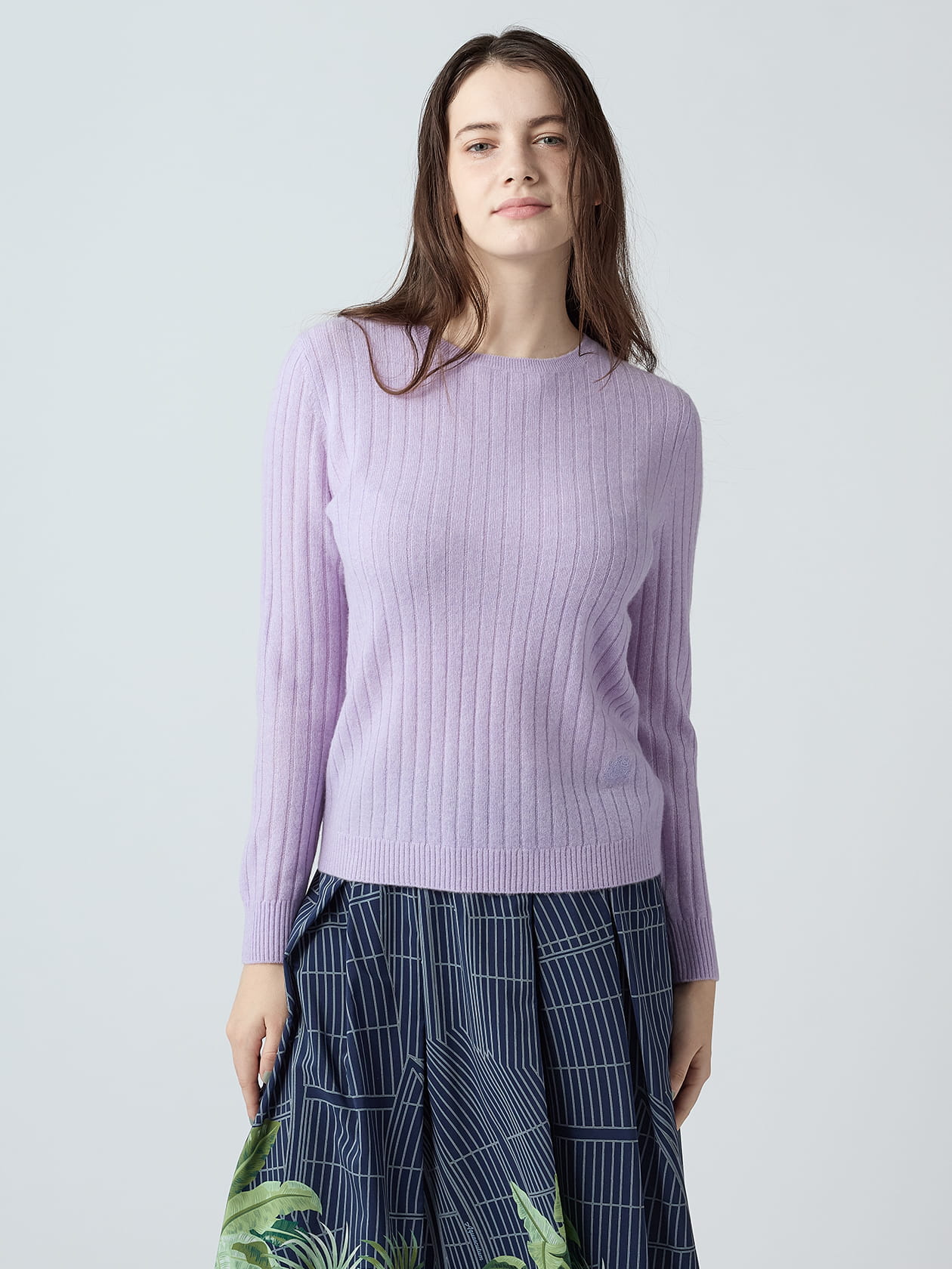ワイドリブ編地が縦のラインを強調しつつ、フィットしすぎない程よいゆるさが魅力。