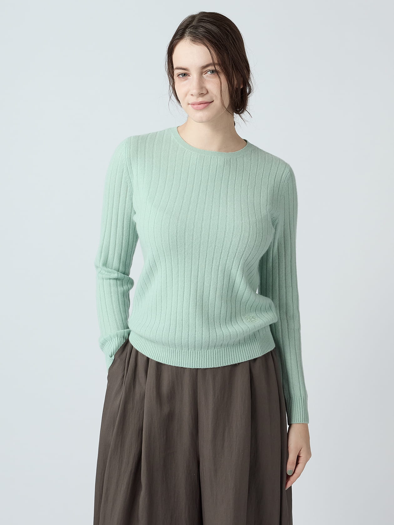 ワイドリブ編地が縦のラインを強調しつつ、フィットしすぎない程よいゆるさが魅力。