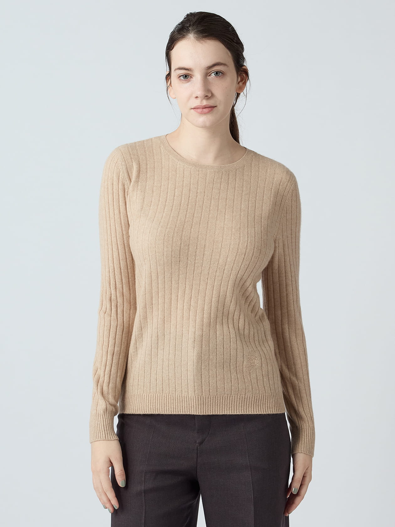 ワイドリブ編地が縦のラインを強調しつつ、フィットしすぎない程よいゆるさが魅力。