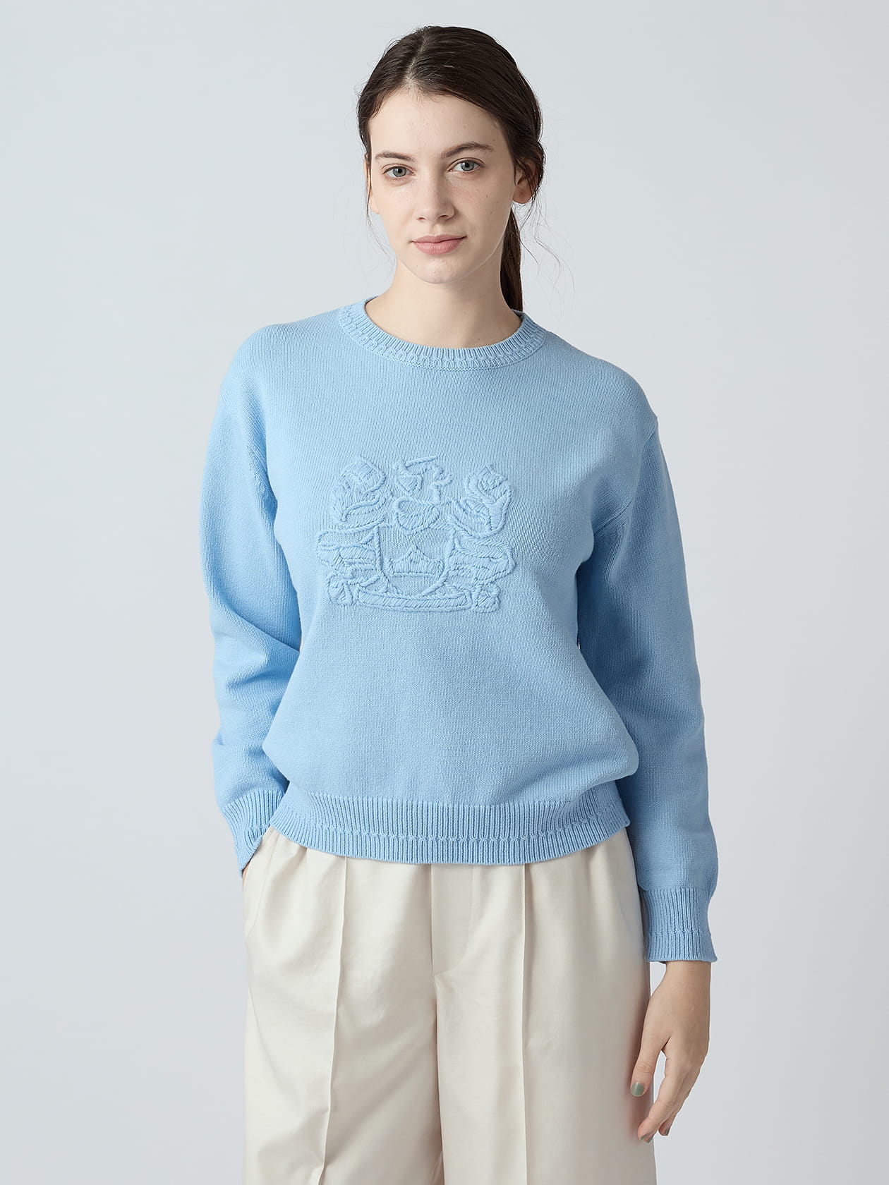 リリヤーンで編み上げた身頃に、オーバーサイズのクレストモチーフ刺繍を施し、Aquascutumならではの品格あるスタイルを演出したリラックス感のあるニットです。