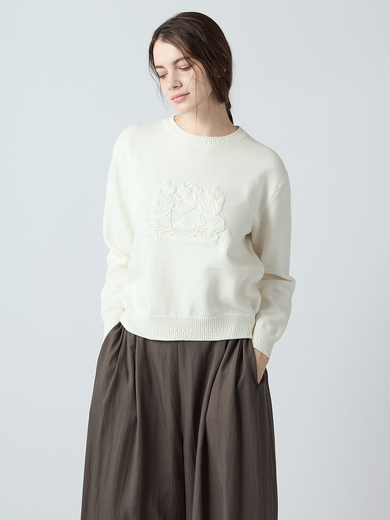 リリヤーンで編み上げた身頃に、オーバーサイズのクレストモチーフ刺繍を施し、Aquascutumならではの品格あるスタイルを演出したリラックス感のあるニットです。