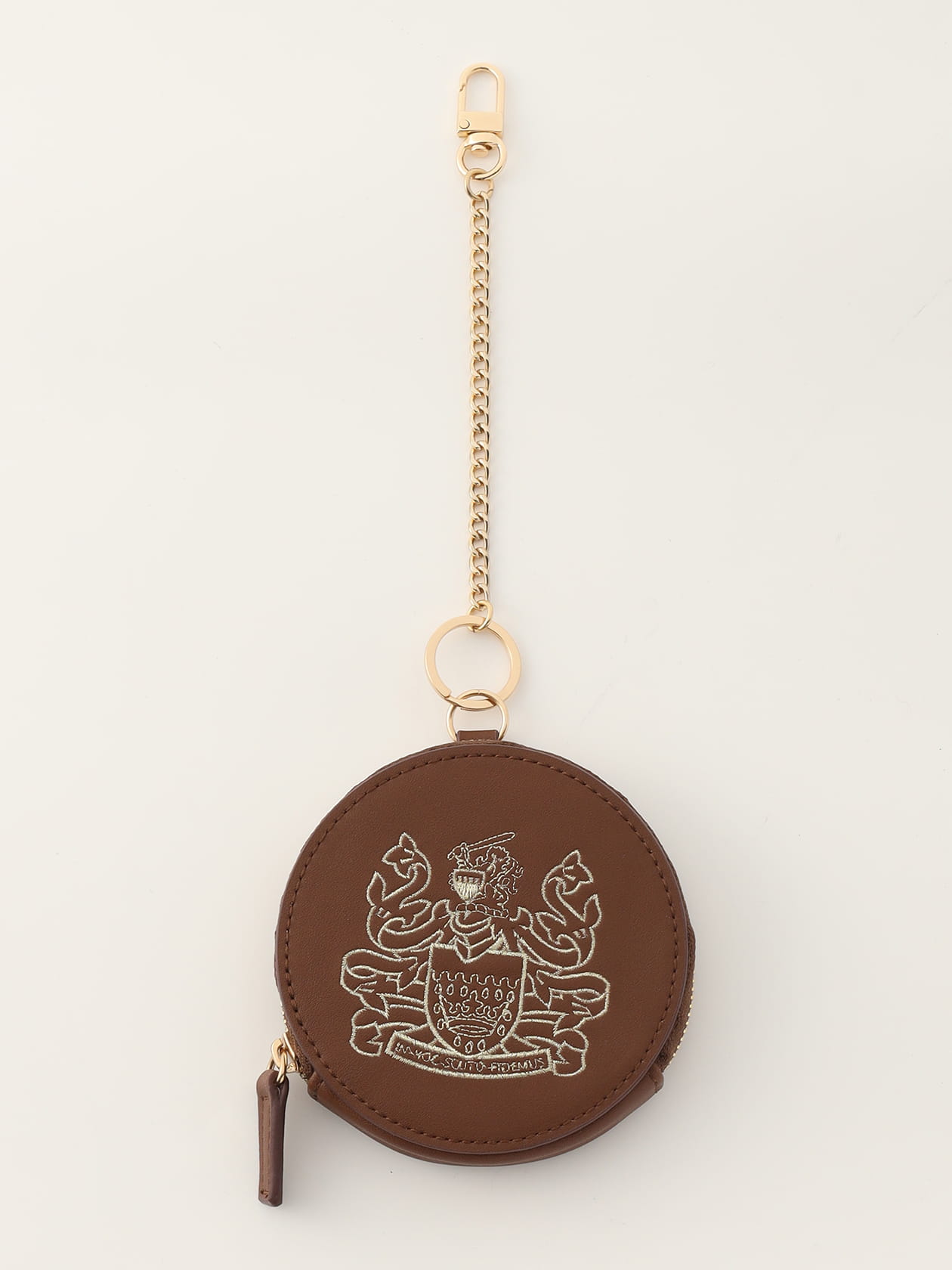 Aquascutumのブランドアイコンである、クレストモチーフのバッグチャーム。