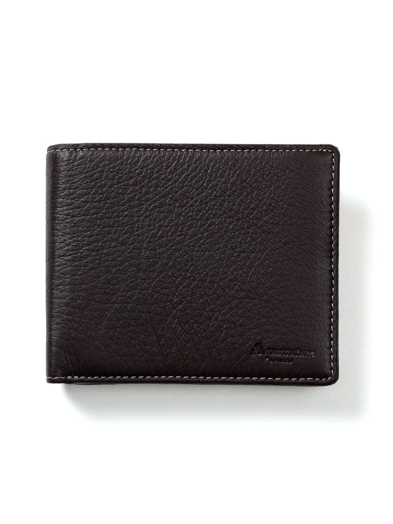 ディアスキン(鹿革)を使用。革のカシミヤと呼ばれるくらい、手に吸いつくようなタッチ感とコシのある柔らかさが特徴です。ステッチはキナリ色を採用し、ディアスキン特有のシボ感にアクセントを加えて上品かつカジュアルな印象に仕上げました。外側には素押し、内装には箔押しのロゴを入れています。内装にはアクアスキュータムの象徴であるクラブチェック生地を使用しています。 札室:2 小銭室:1 カード室:8 ポケット:3