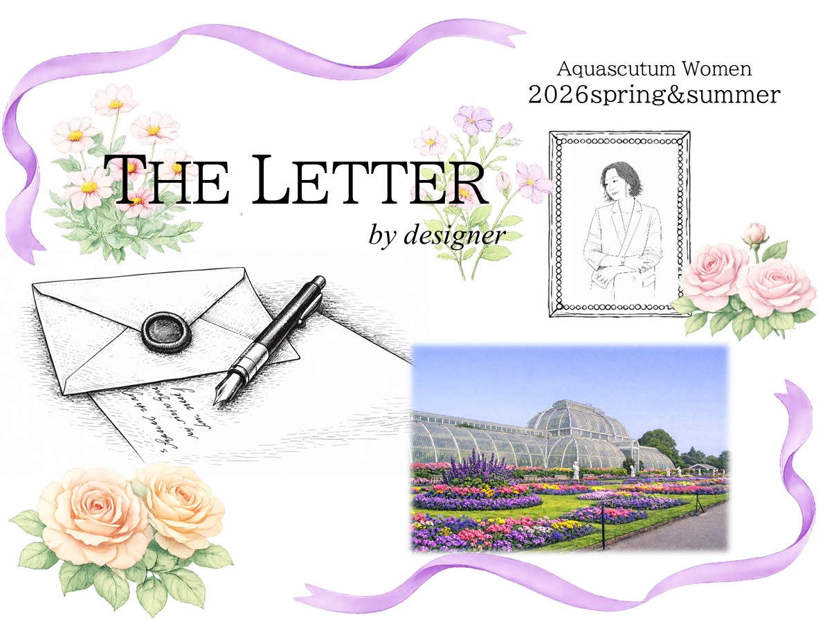 AQUASCUTUM アクアスキュータム の名前の由来は、ラテン語で「水」を表す “AQUA” と、「盾」を表す “SCUTUM”。