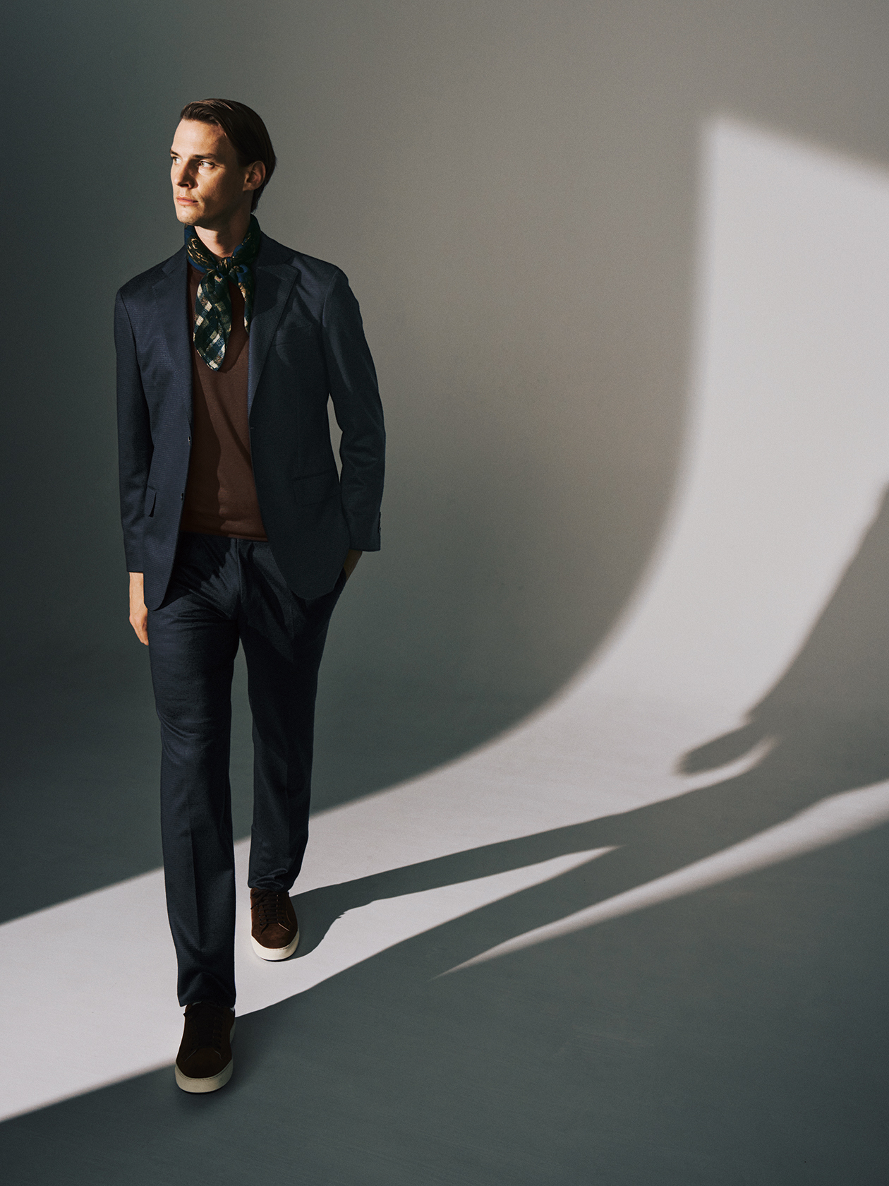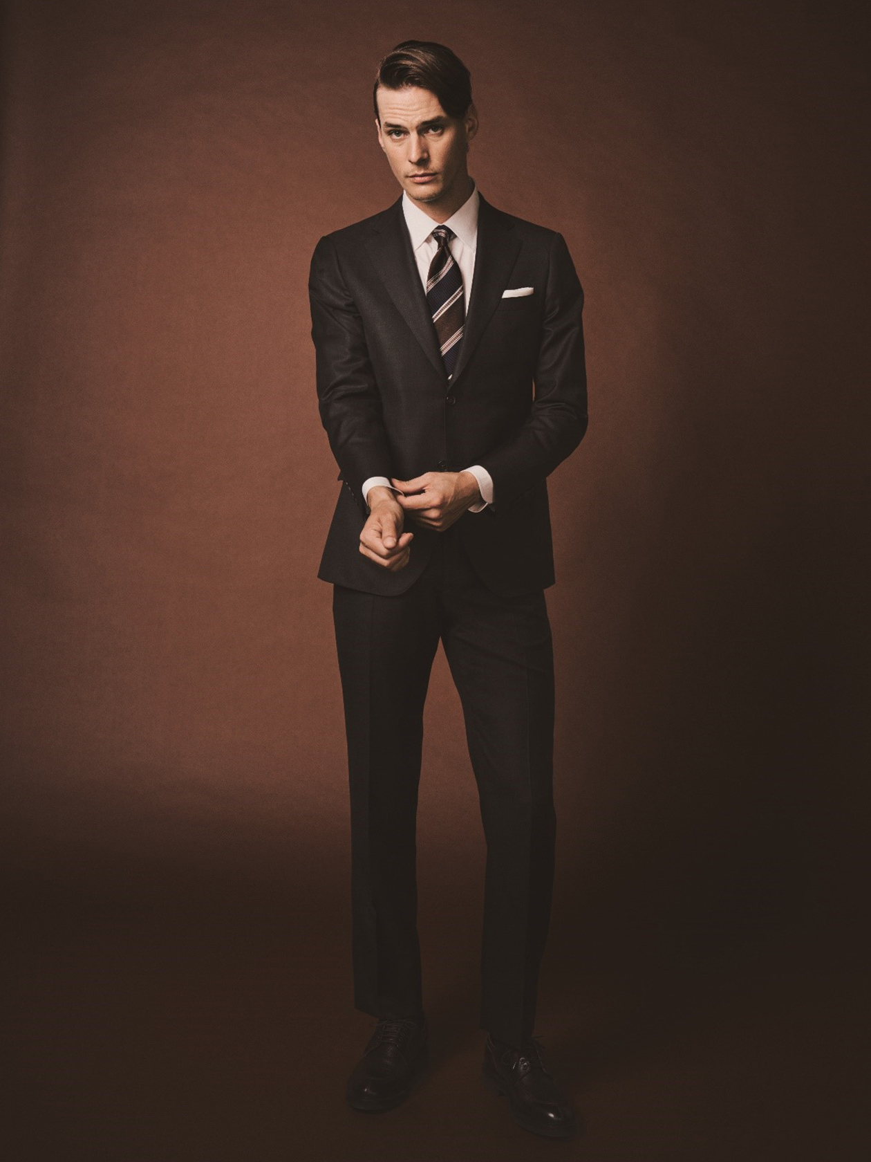 アクアスキュータムメンズ、今シーズンのテーマは「伝統とモダンさが融合したロンドンを象徴する建築物」です。