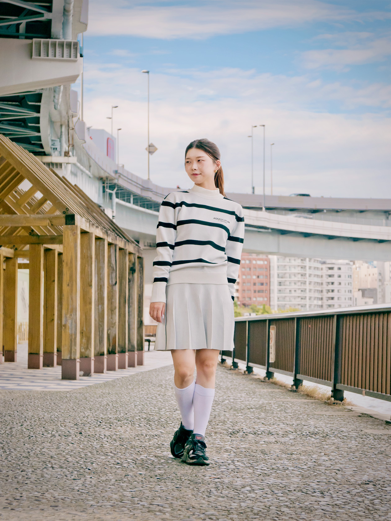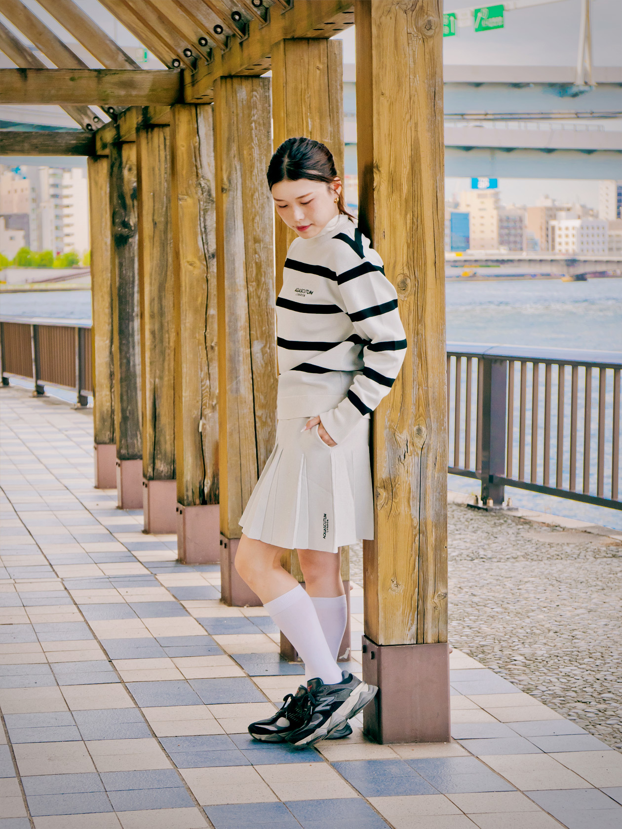 ハイソックスを合わせ、シーズンムードを感じるあたたかなスタイリングがおすすめです。