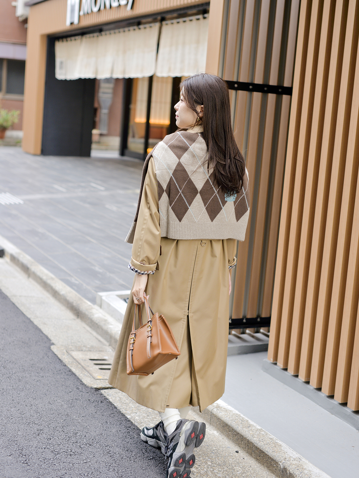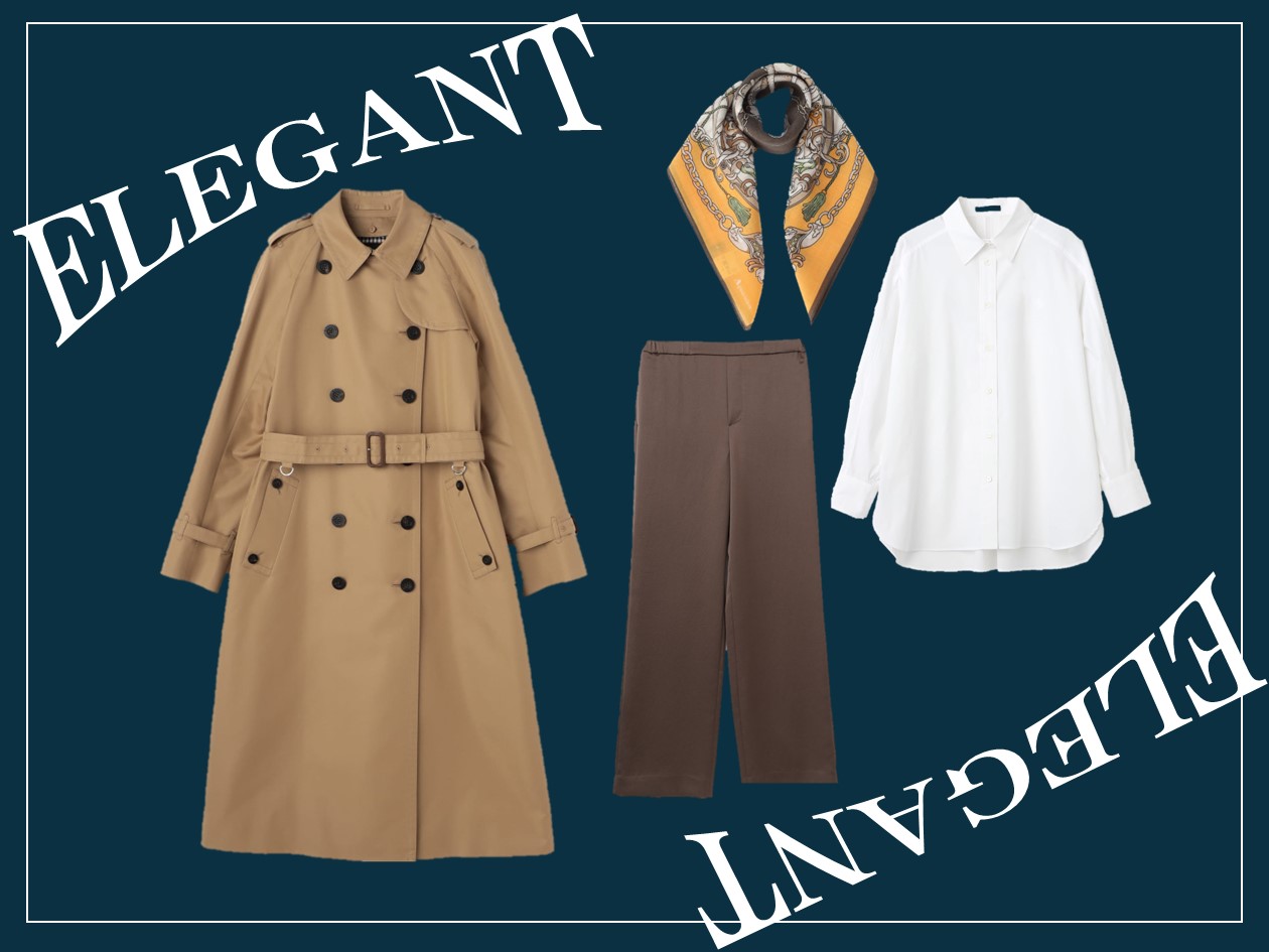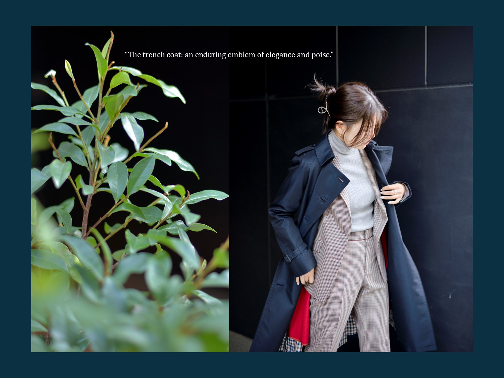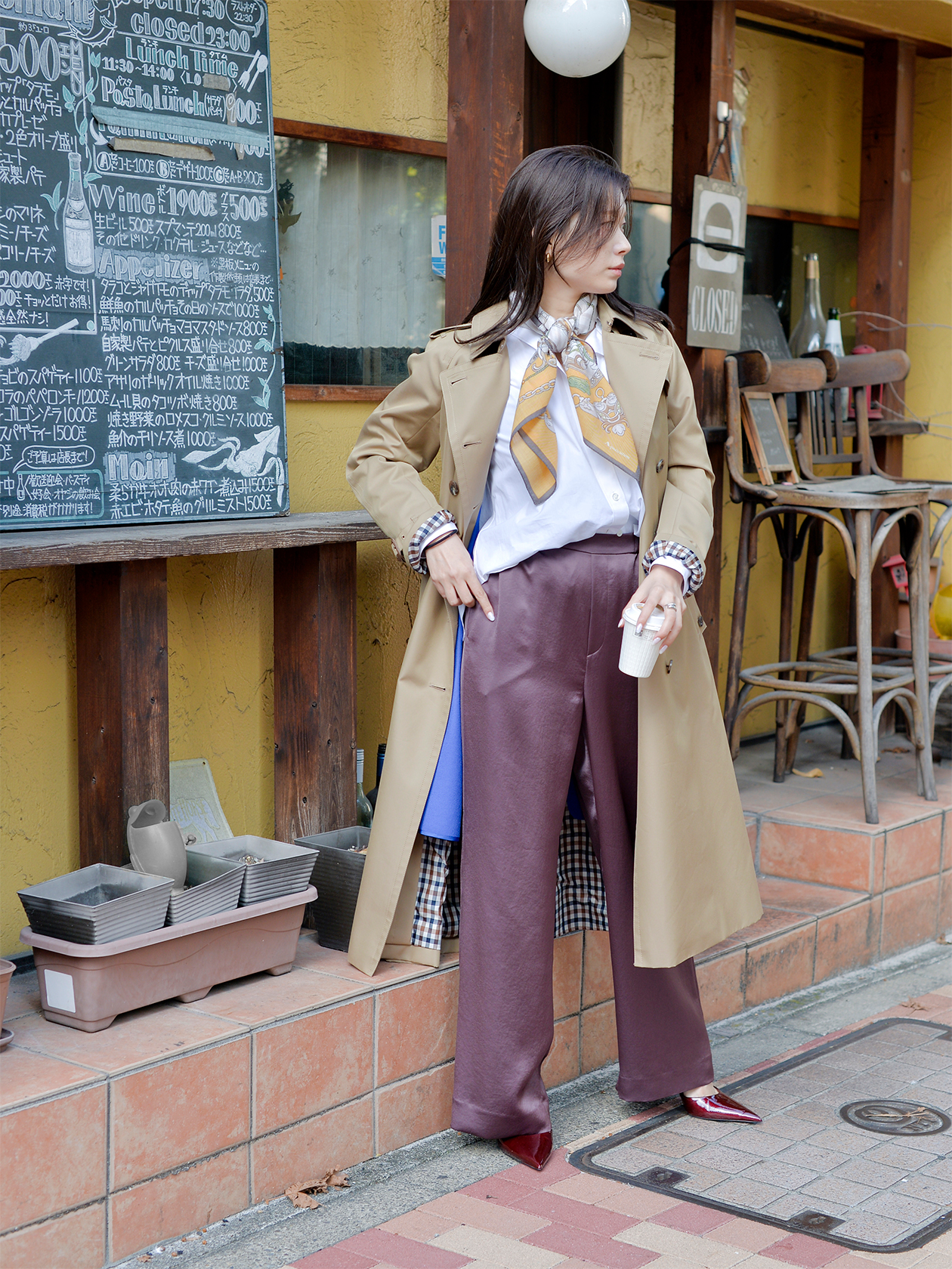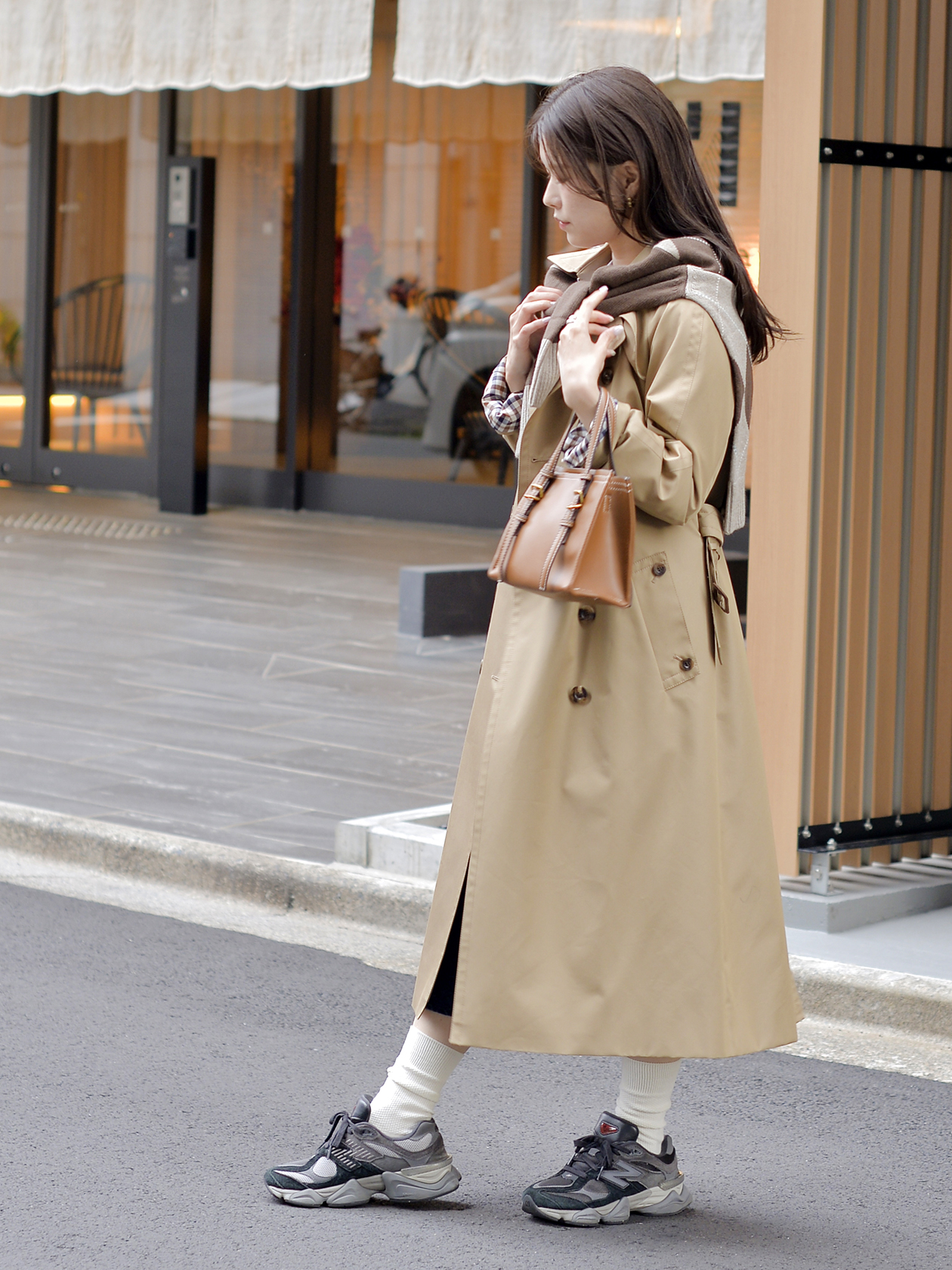 さらに、トレンチコートを羽織ることで一層洗練された雰囲気に。