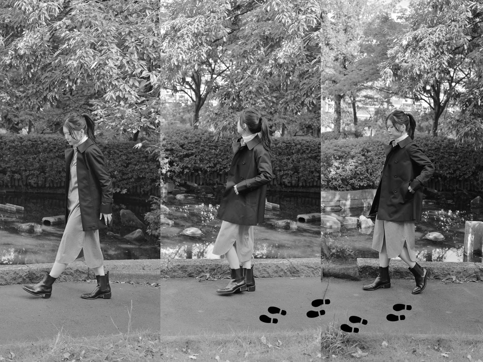 トレンチを重ねることで、時代を超えるクラシックさに現代的な軽やかさが加わり、洗練された佇まいへ。