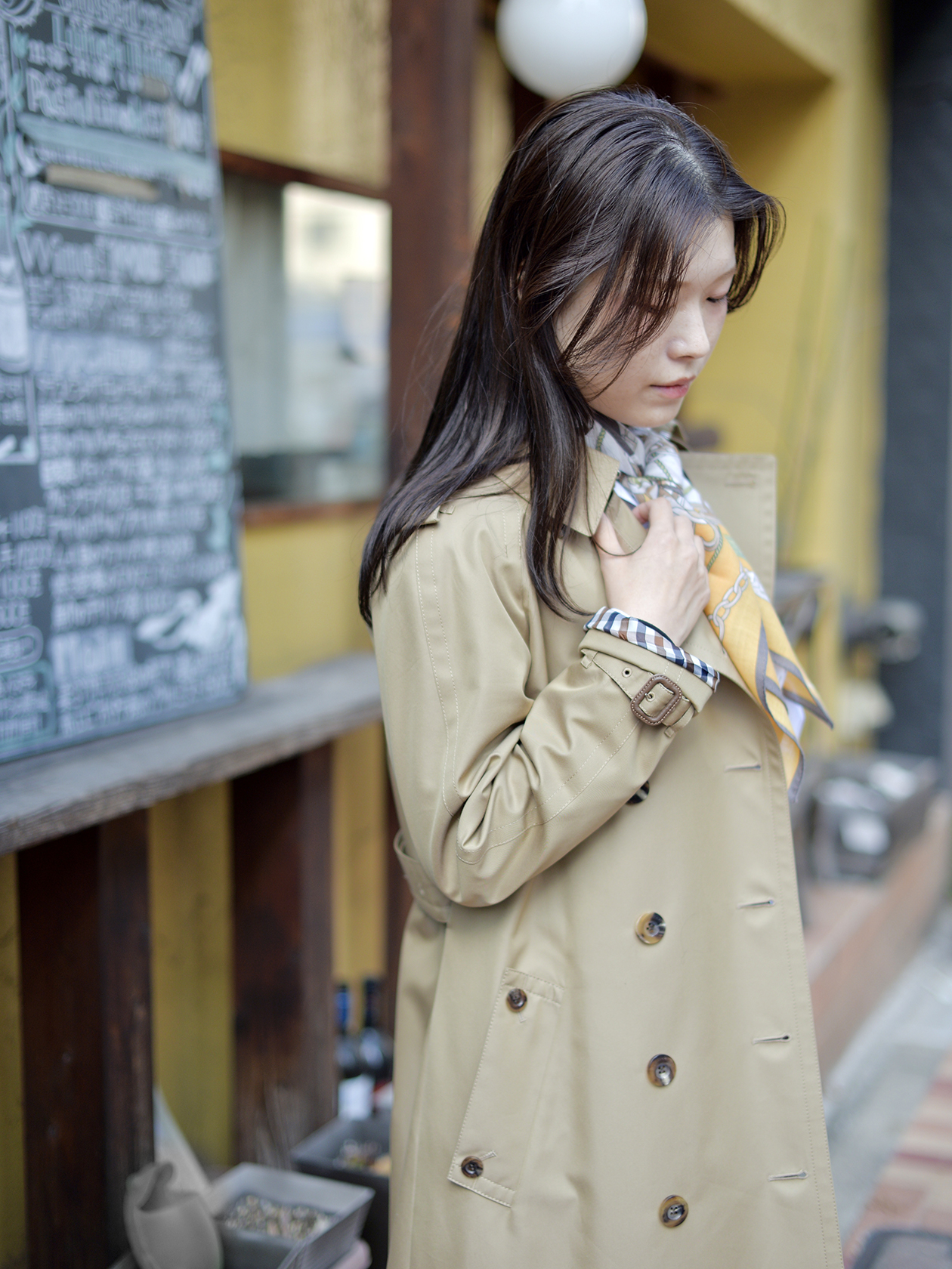 伝統を受け継ぎながら、日本人の体型に寄り添うシルエットへと進化したアクアスキュータムのトレンチコート。
