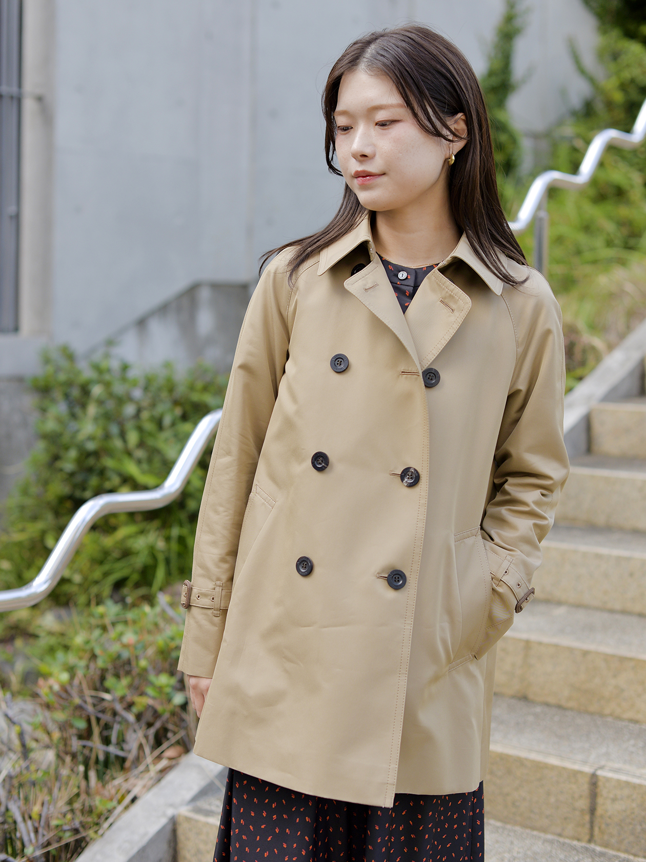 着丈が短くすっきりとした見え感のAライントレンチコートは、定番に次ぐ人気アイテム。