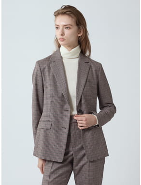 ガンクラブチェックの柄行きと落ち着いた色合いが、知的で信頼感のある印象を与えます。