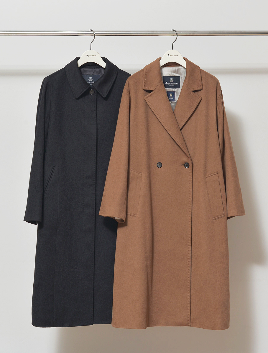 そのトレンドを問わない端正なデザインから長く愛されているステンカラーコートをはじめ、今シーズンは「PURE CASHMERE COLLECTION」として銘うち、幅広いラインアップで展開しています。
