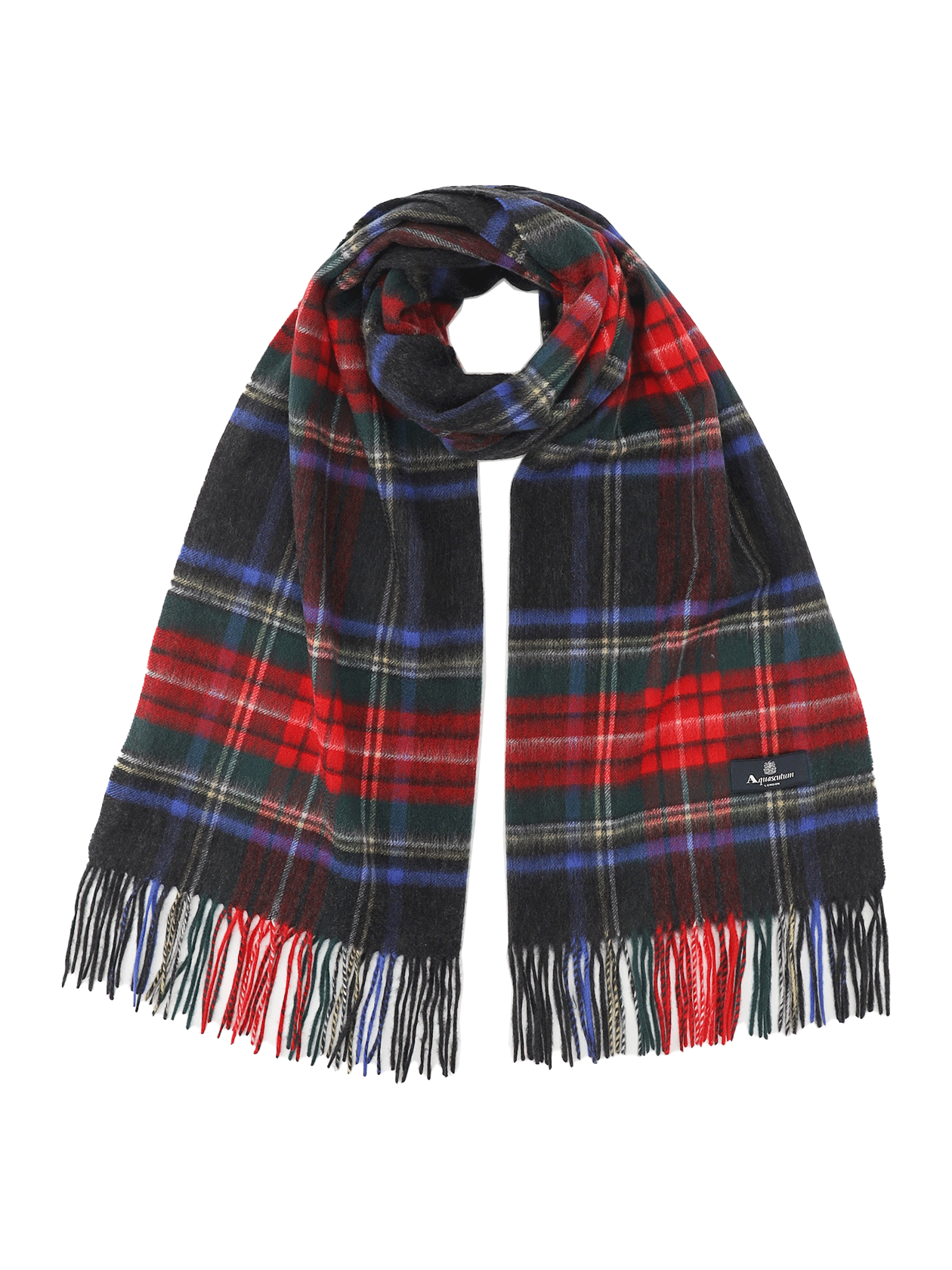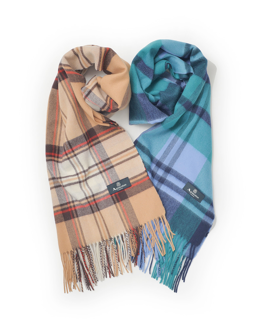 マフラーはスコットランドが起源のタータンチェック柄に。
