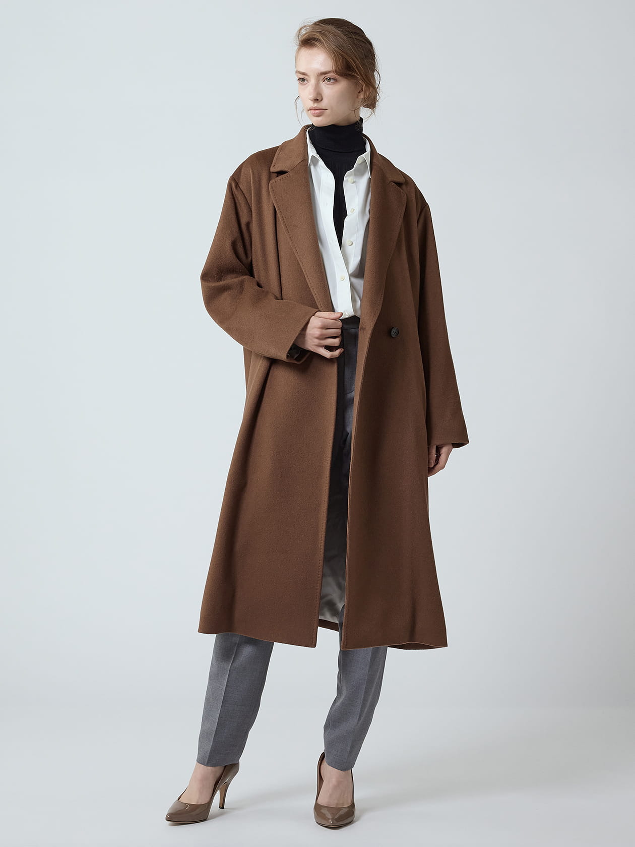 タリア・COLOMBO社のインポートファブリックを使用したラグジュアリーなカシミヤコートを展開。