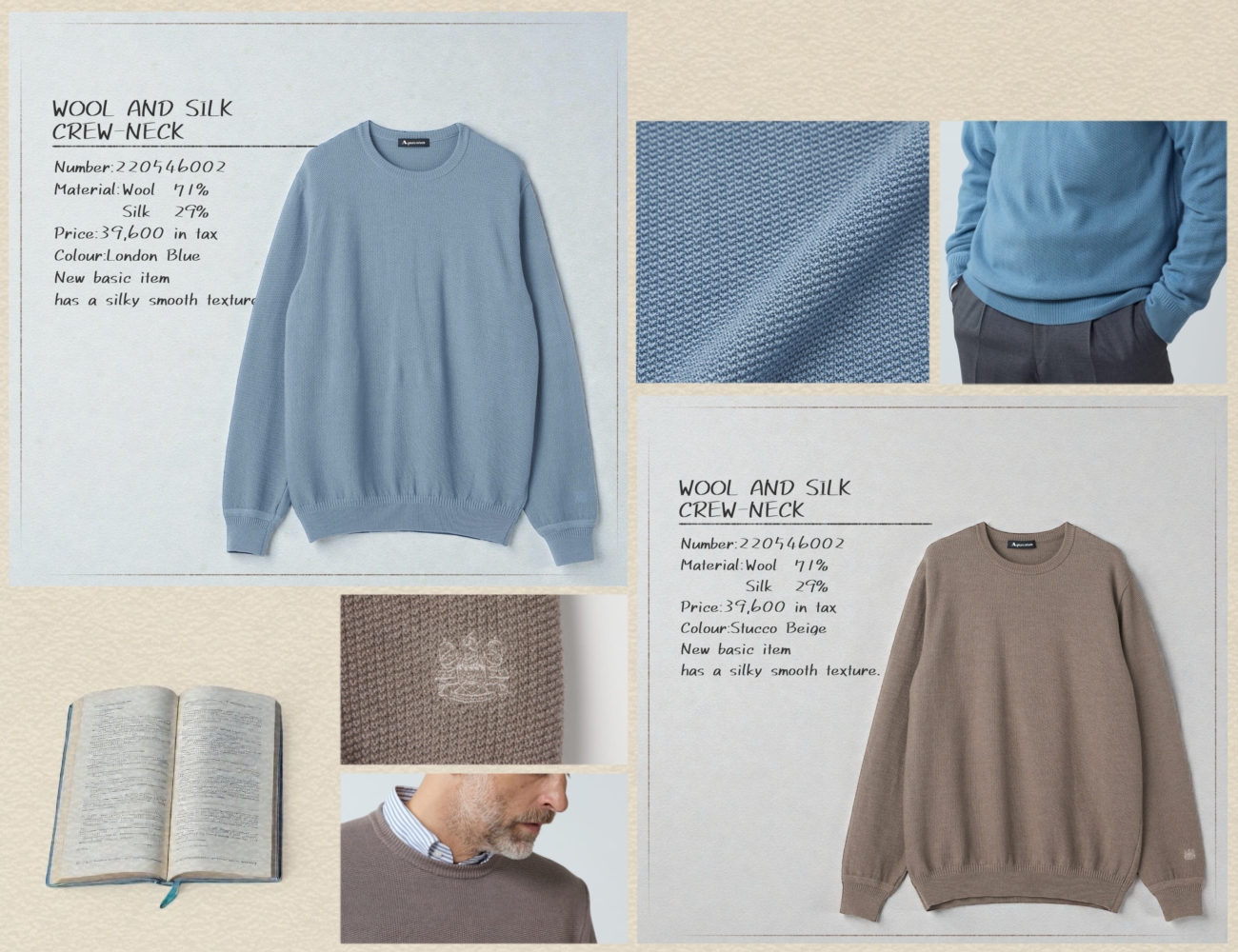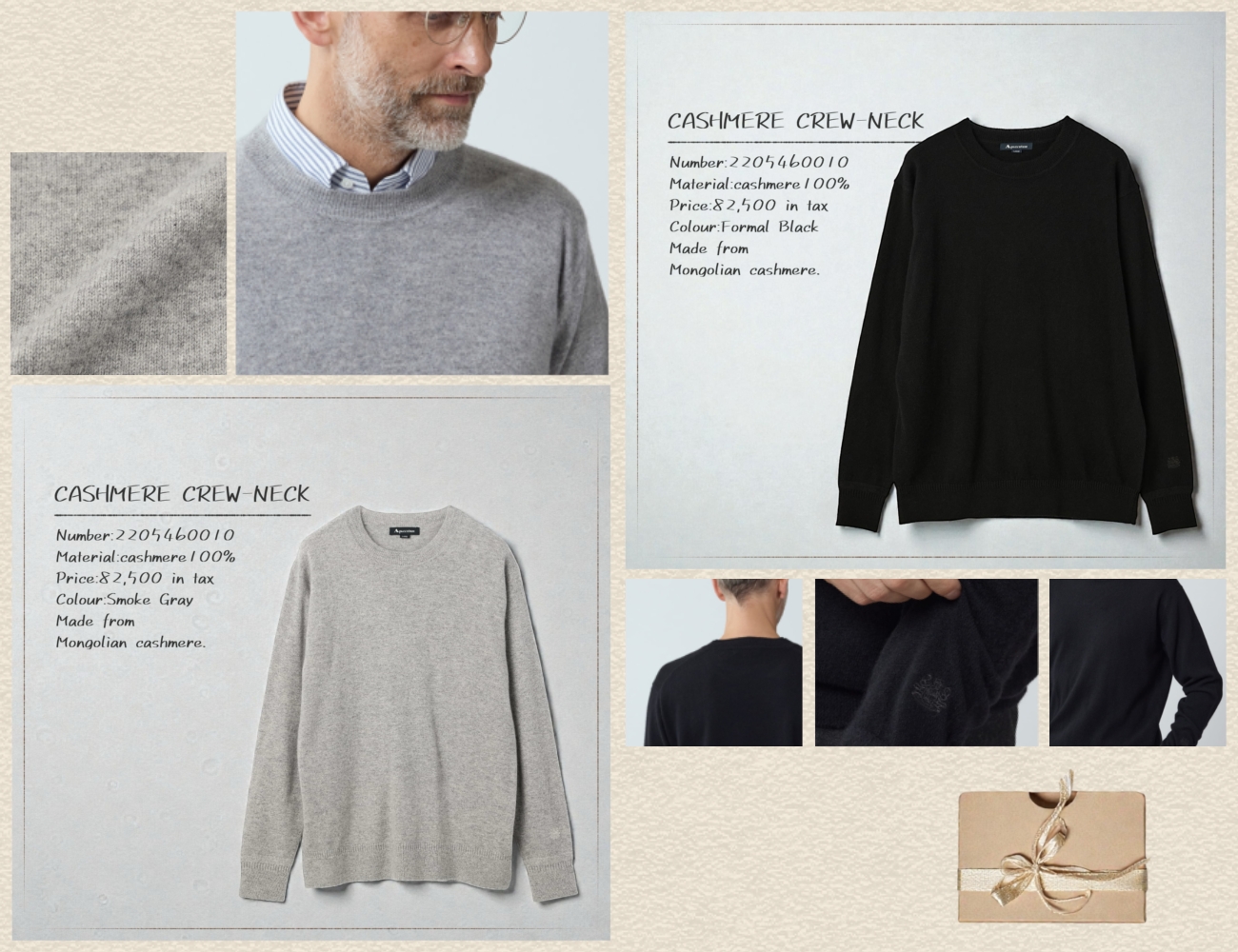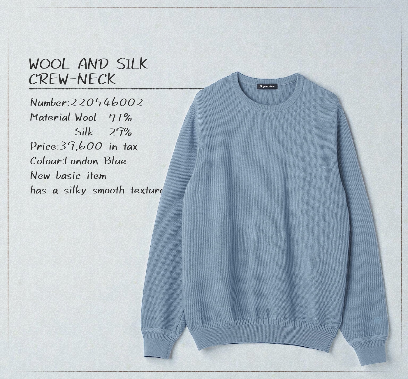 ふと見まわすと冬の景色に様々溶け込んでいる「クルーネックニット」。