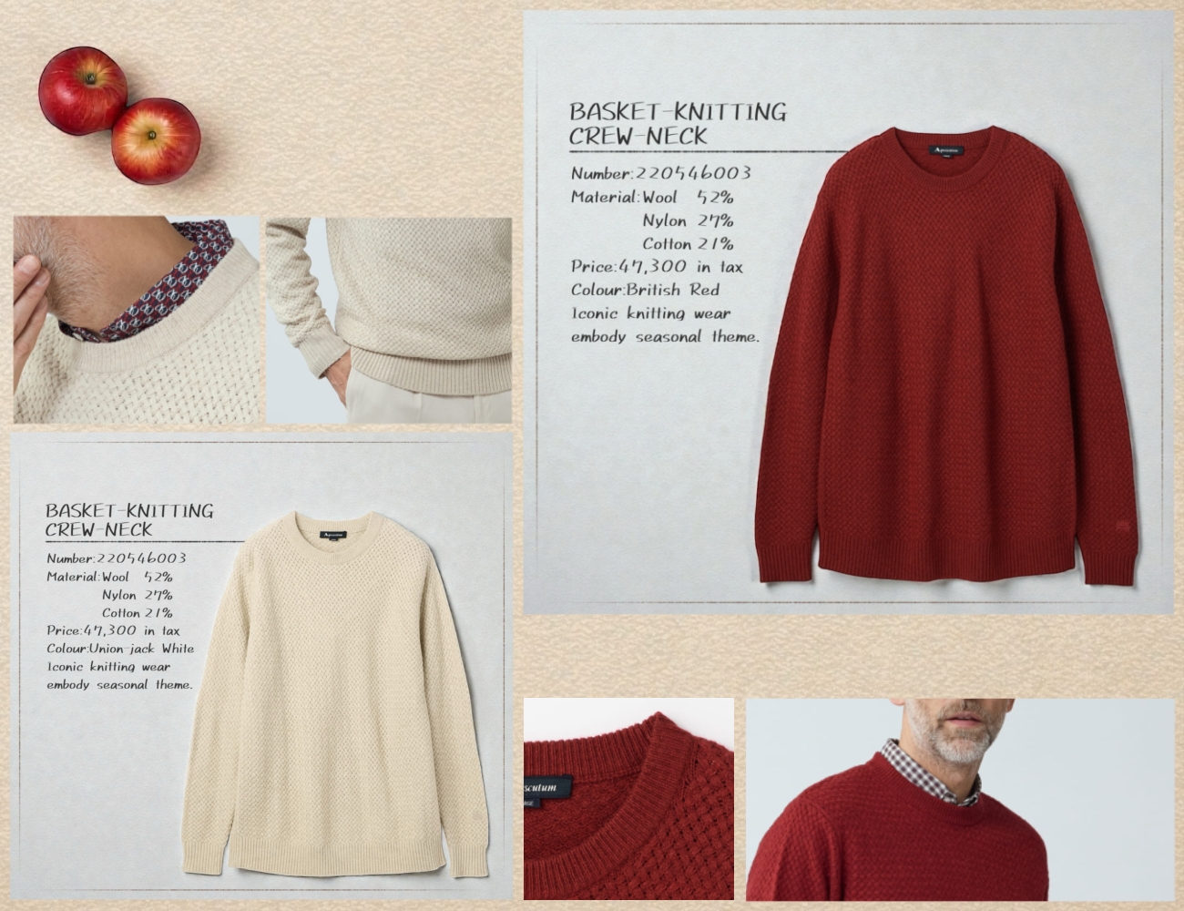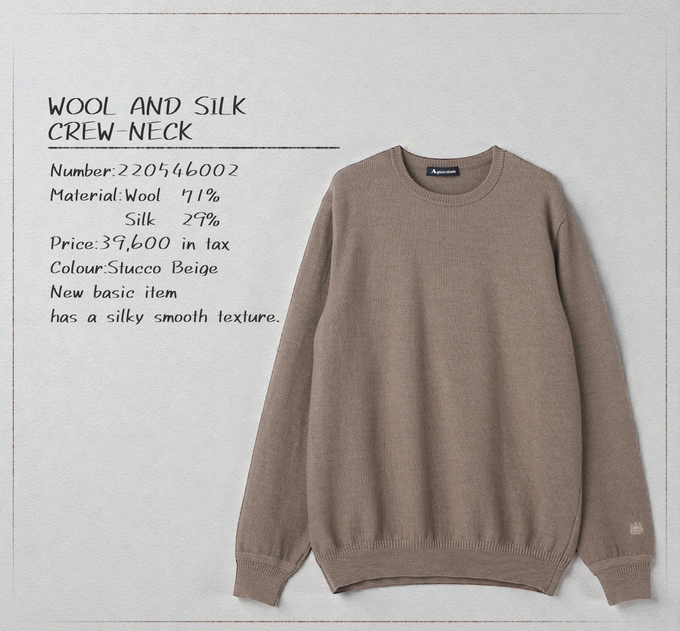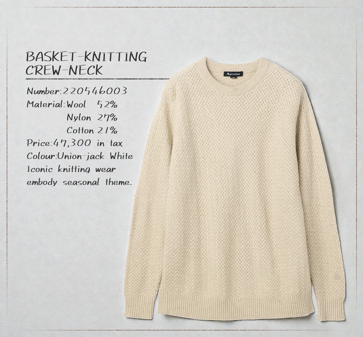 ふと見まわすと冬の景色に様々溶け込んでいる「クルーネックニット」。