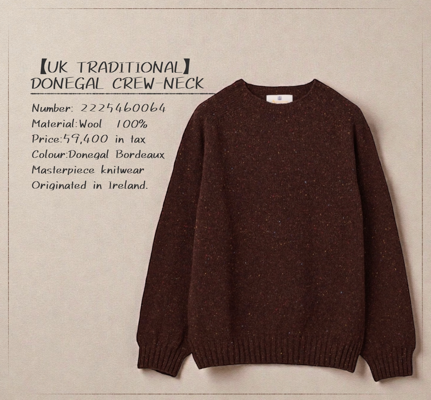 【UK Traditional】Donegal Crew-neck Bordeaux