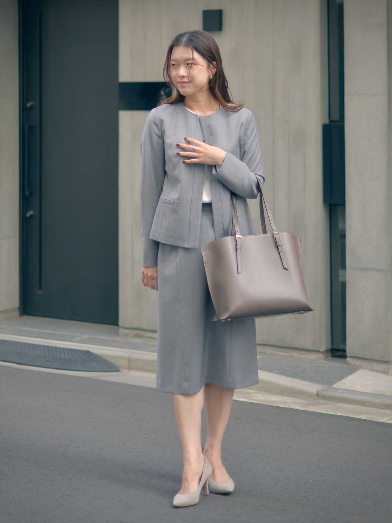 素材とシルエットで魅せるスーツスタイル