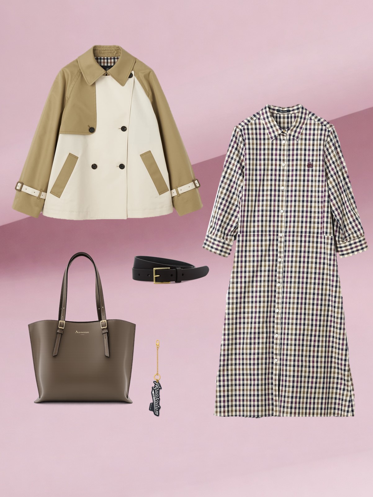 アクアスキュータムでは定番トレンチコートをはじめ、軽く羽織ることができるタフタコートやショート丈のトレンチコートなど、さまざまなスプリングコートを展開しております。
