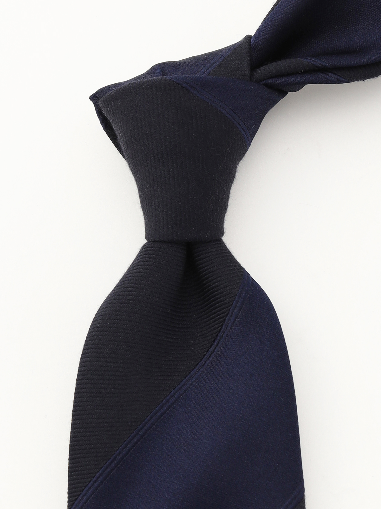 異なる織りを隣り合わせる事でレジメンタルストライプを表現したネクタイ。