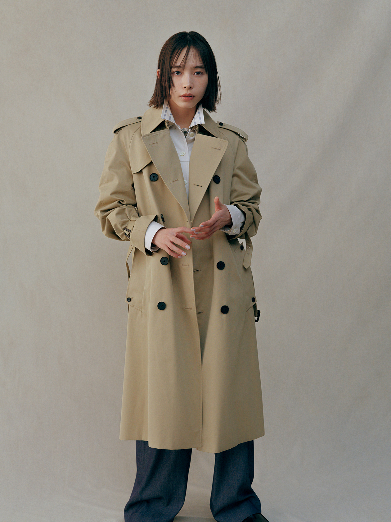 映画スターなど数々のセレブリティをはじめ、多くの紳士たちに愛されてきたアイコントレンチも、現代女性ならジェンダーレスに着こなすことができます。