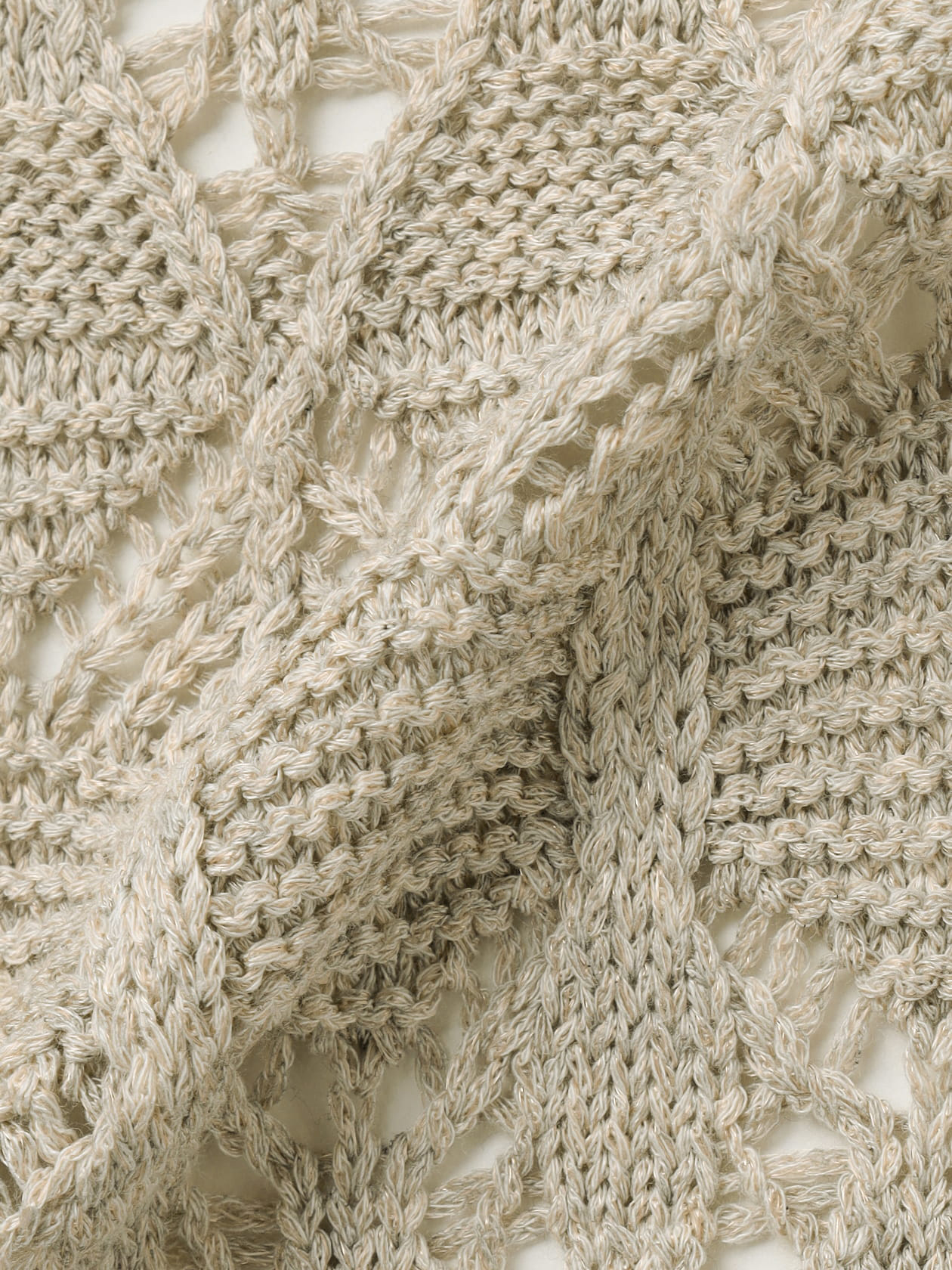 主役は、柔らかく輝くイエローと瑞々しいオレンジ。さらによく見てみると、ふっくらとした生成りの糸の他に、茶色の深みや、水色の爽やかさ、ピンクの可憐さが繊細に散りばめられているのがわかります。