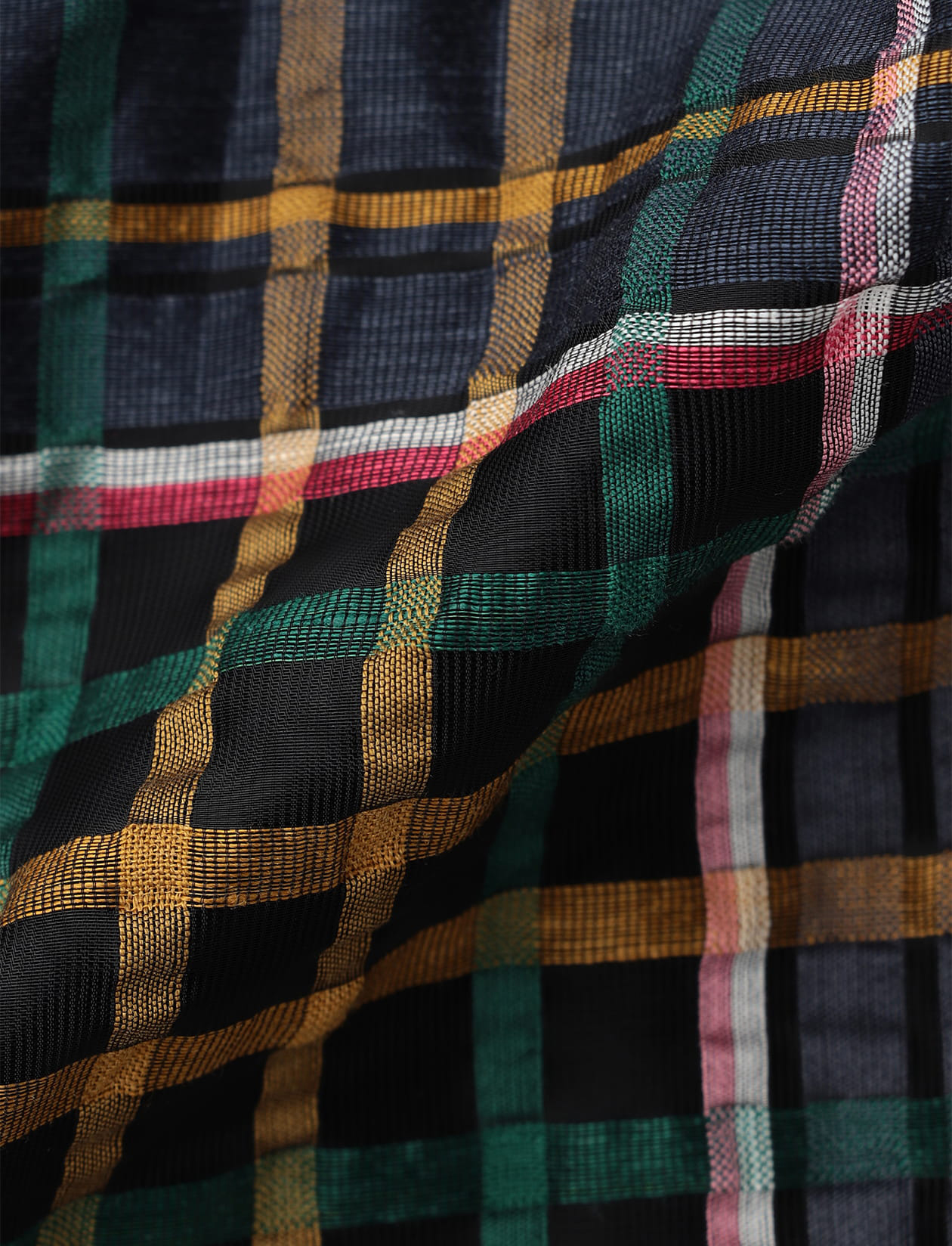 2026年春夏では、桐生の工房にて色糸を巧みに組み合わせたオリジナルチェックを織り上げました。