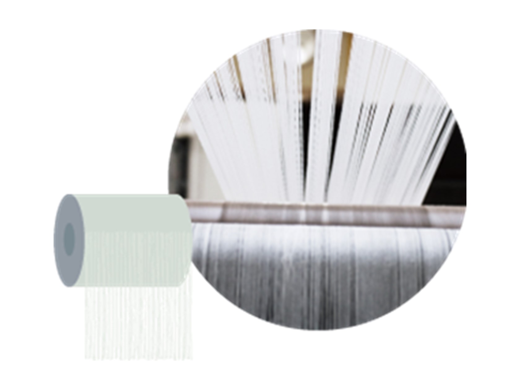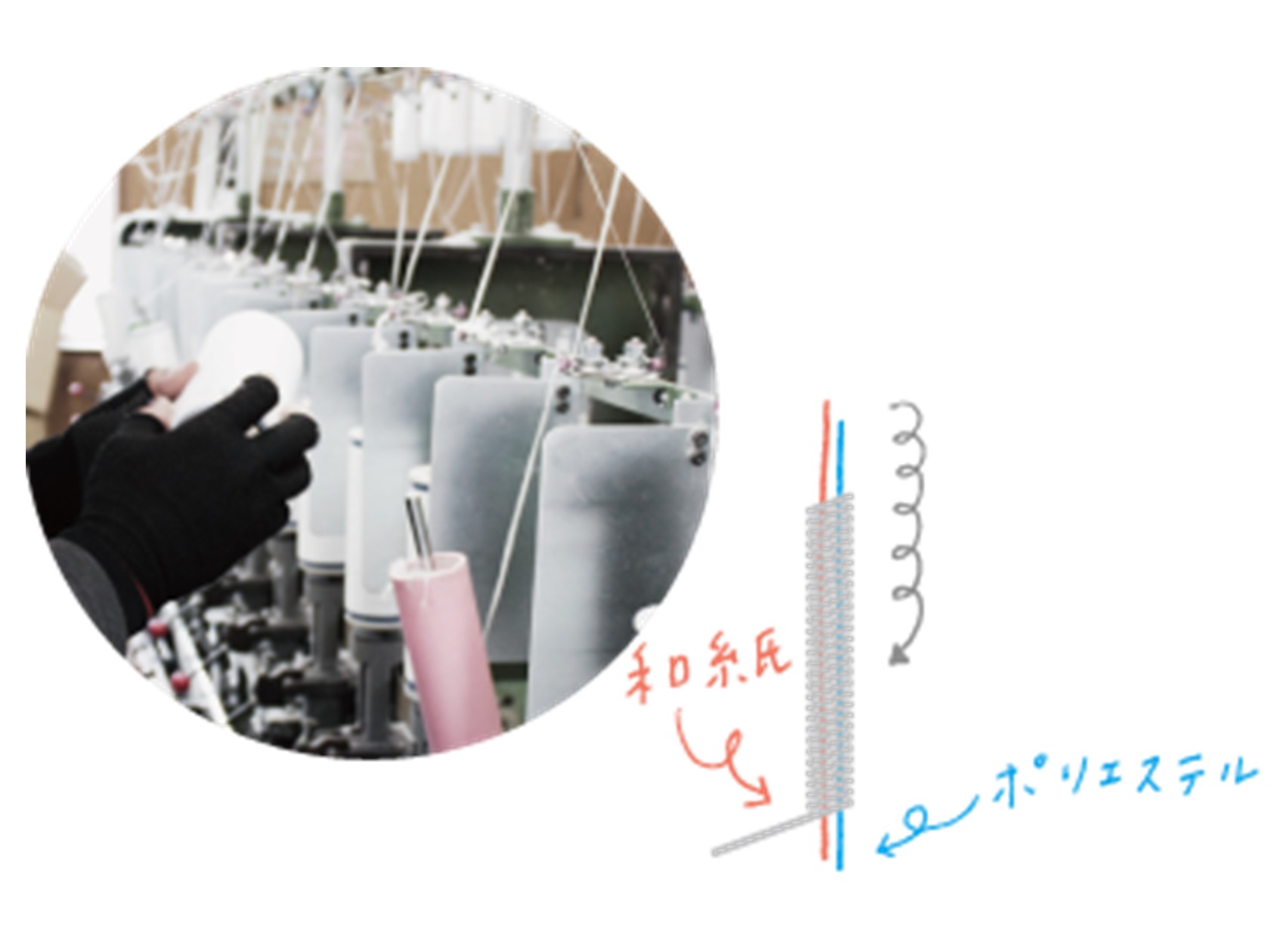 camifine®では、和紙の特性を活かしつつ、洗濯性などを向上させるため、ポリエステルと一緒に撚り込んでいきます。