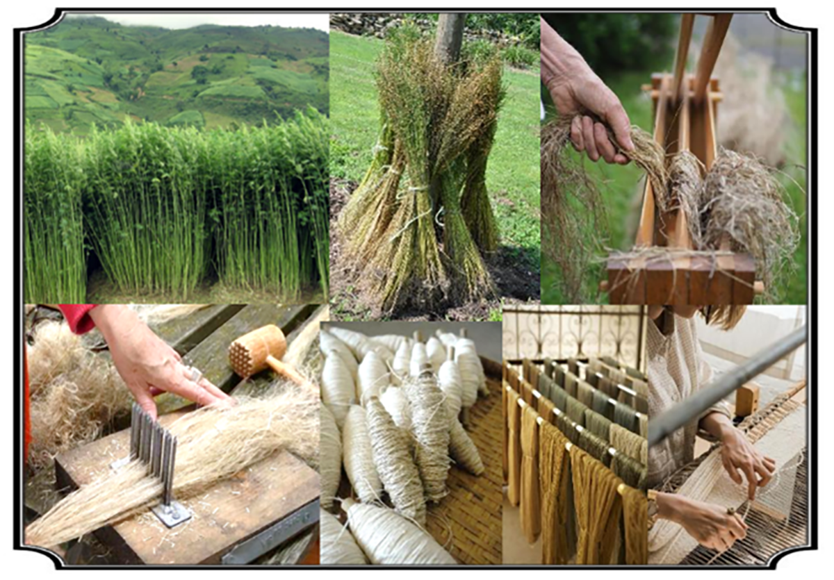 特に苧麻(ラミー)は「手績み」が伝統技法として知られ、極めて時間と技術を要します。